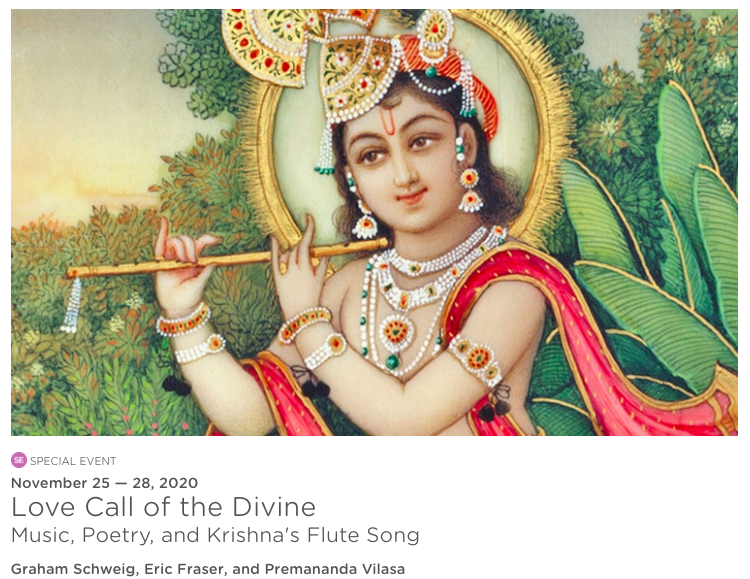 Come rejoice in these beautiful, love-filled melodies, complemented by relevant passages from the Bhagavad Gita, Yoga Sutra, Upanishads, and Bhagavata Puraṇa to illuminate the love call of the Divine.